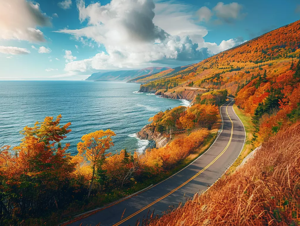 Discover the rugged beauty of Nova Scotia's Cape Breton Island on the Cabot Trail. This 298-kilometer coastal road winds through Cape Breton Highlands National Park, offering panoramic views of the Atlantic Ocean, lush forests and colorful fishing villages. Keep an eye out for bald eagles and whales along the way.