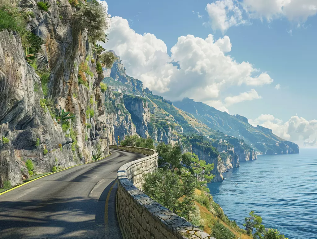 Experience the allure of the Amalfi Coast in Italy, where the 50-kilometre road winds along dramatic cliffs overlooking the sparkling Mediterranean Sea. Depart from Sorrento and journey through charming villages like Positano and Ravello. Admire the vibrant colors of the coastline, indulge in delicious Italian cuisine and soak in the Mediterranean sun.