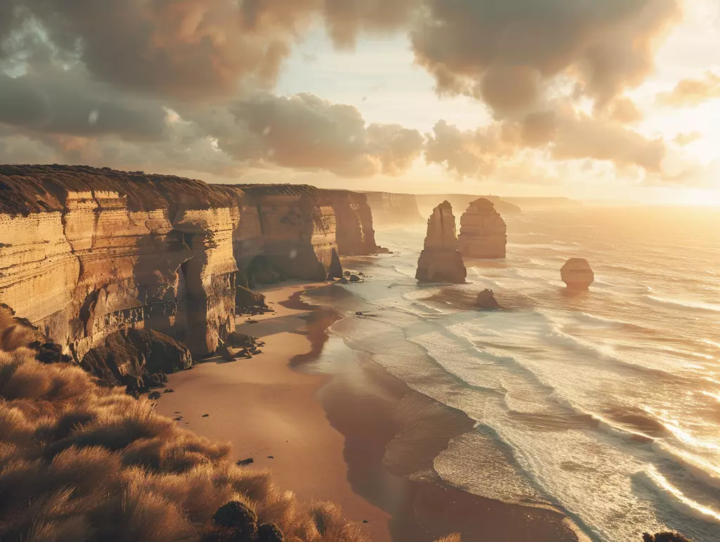 Explore Australia's southern coast on the 240-kilometre Great Ocean Road, known for its rugged cliffs, pristine beaches and the famous Twelve Apostles rock formations. Starting from Melbourne, drive westward to witness breathtaking coastal landscapes, lush rainforests, and abundant wildlife. Stop at picturesque towns like Lorne and Apollo Bay for a taste of local hospitality.