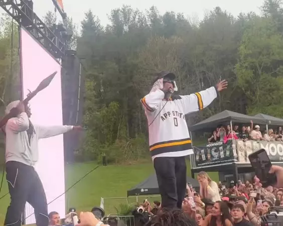 On Saturday Miami XO made a guest appearance during Thaw Out, a one-day rap festival in Boone, North Carolina that also had performances from DaBaby and Ian Asher. He performed “Bazooka” while one of his hype men was holding a bazooka. Afterwards, he told Stereogum afterwards that he’d never performed at all before, but he has another show at Thaw Out’s Tennessee edition this Friday. How does he think it went on Saturday? “Pretty good, didn’t expect that,” he told us. As far as we can tell, no grannies were hit. See a clip from the audience below.
