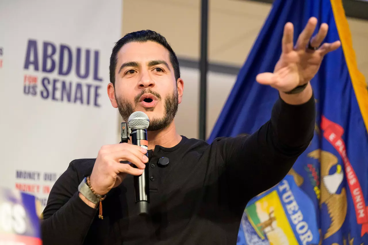 Abdul El-Sayed speaks during a campaign event for his bid for U.S. Senate in Michigan, at the University of Michigan on Tuesday, April 7, 2026, in Ann Arbor, Michigan.