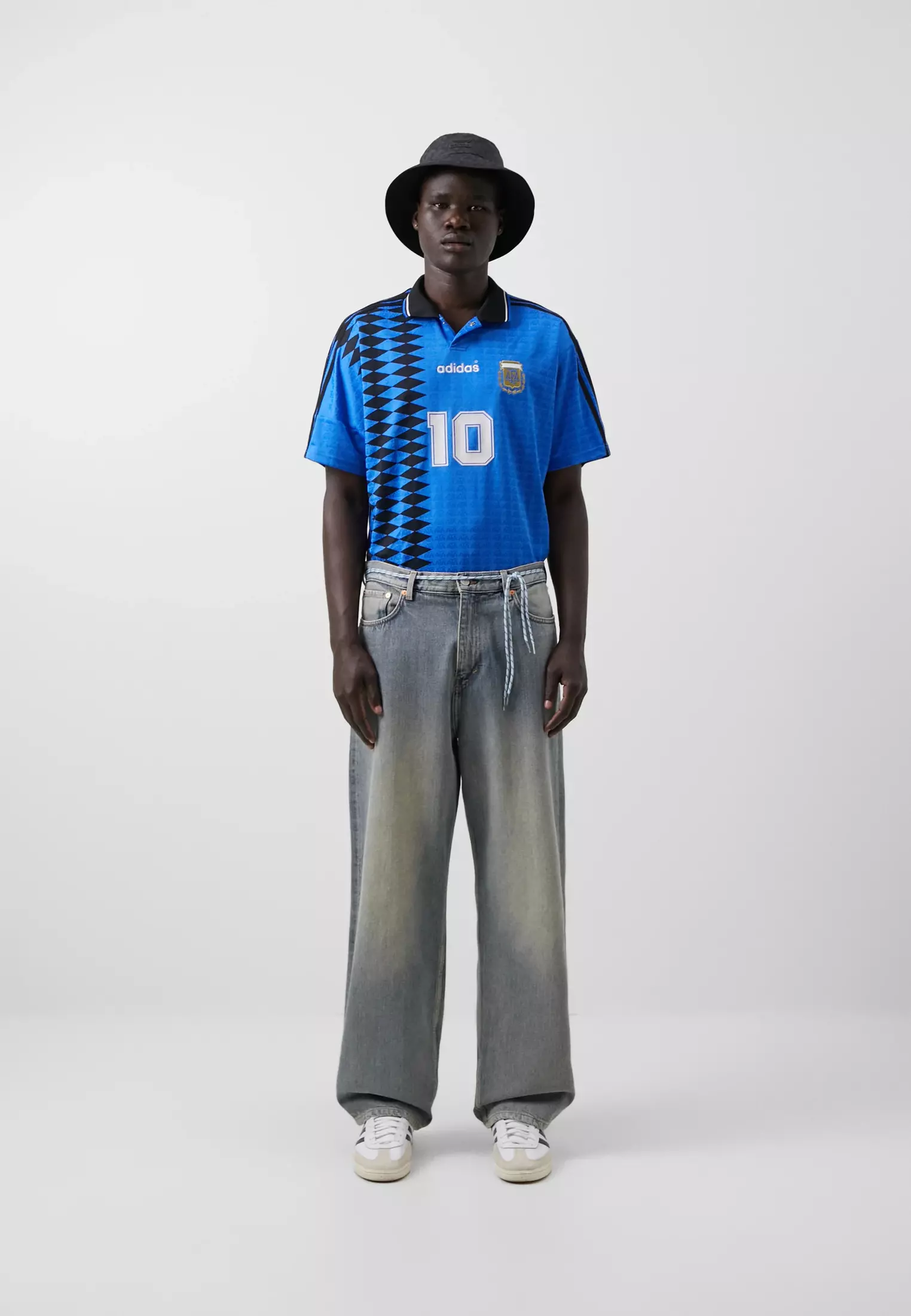 A football jersey and some relaxed-fit jeans. That’s all you need to tap into blokecore. Whether it’s a vintage Manchester United kit or a modern-day Adidas drop, keep it slightly oversized. Bonus points if it’s got a classic sponsor logo on the front.