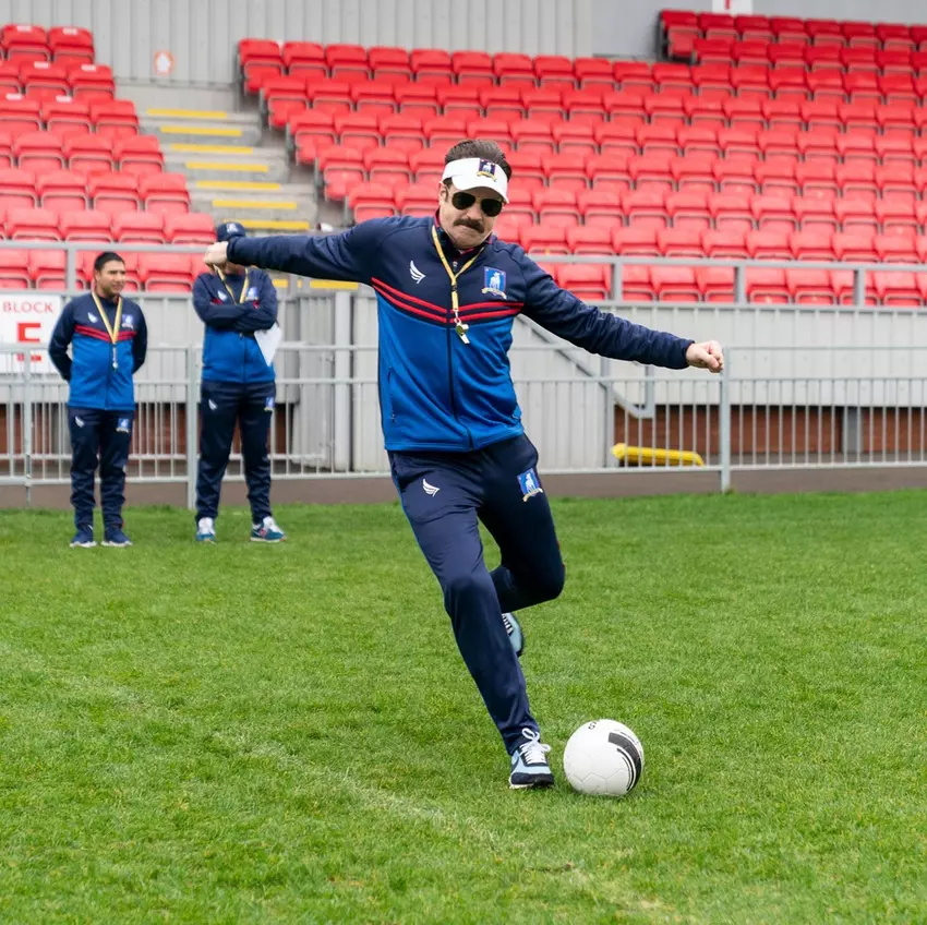 Be Ted Lasso! You’ll just need to pull together a few items to mimic the beloved soccer coach’s signature look. Start with a blue tracksuit or just the jacket with khaki pants. Add a white visor, a whistle on a lanyard, aviator sunglasses and, of course, a thick mustache.