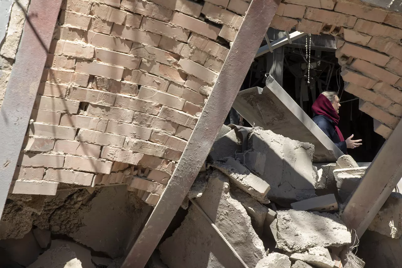 People walk through the debris at Sharif University of Technology, which was hit by U.S.- Israeli strikes, on Tuesday, April 7, 2026, in Tehran, Iran.