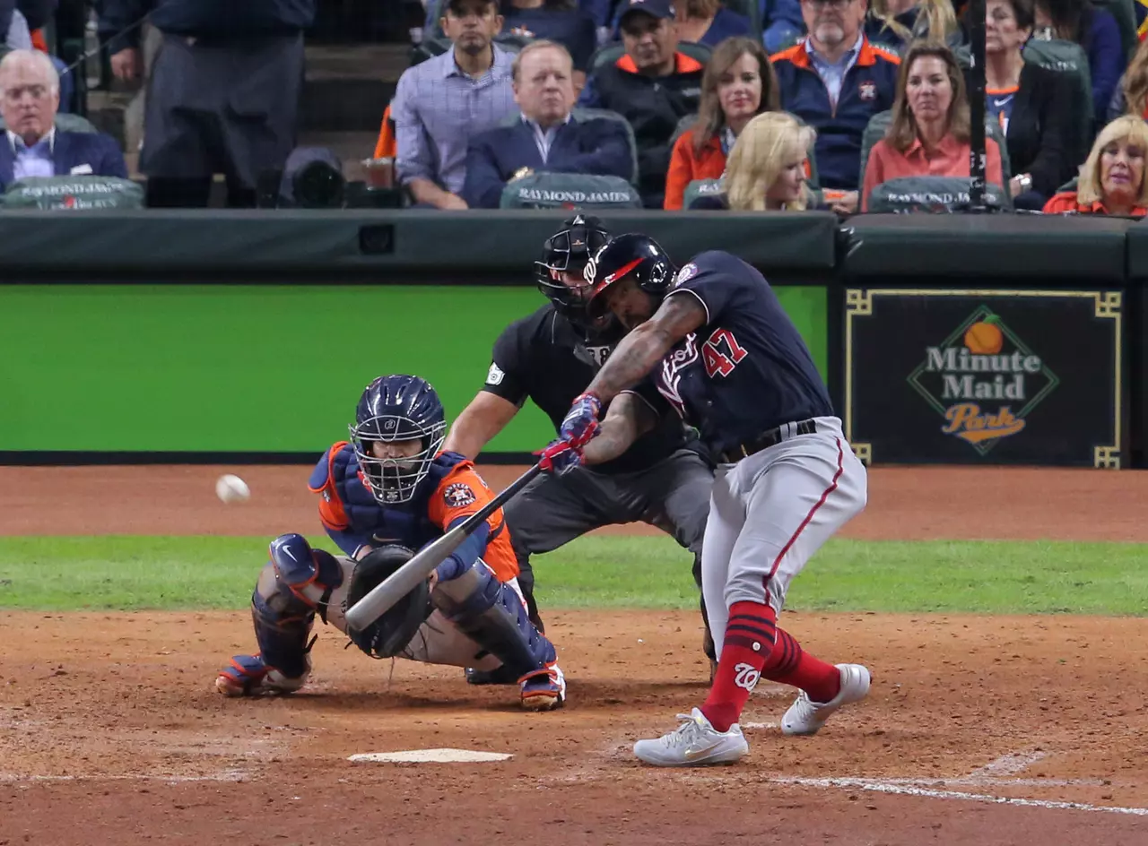 The Nationals trailed 2-0 entering the seventh inning of Game 7 at Houston in 2019. Anthony Rendon made it a 2-1 game with a solo homer in the frame, then Kendrick eventually delivered what should be the biggest hit in Nationals' history. With a man on base, Kendrick drilled a Will Harris that hit the right-field foul pole to put Washington ahead 3-2. The Nationals tacked on three more runs over the next two innings and stunned the Astros with a 6-2 victory for the franchise's first World Series crown. We're still not certain how Expos fans fell about this.