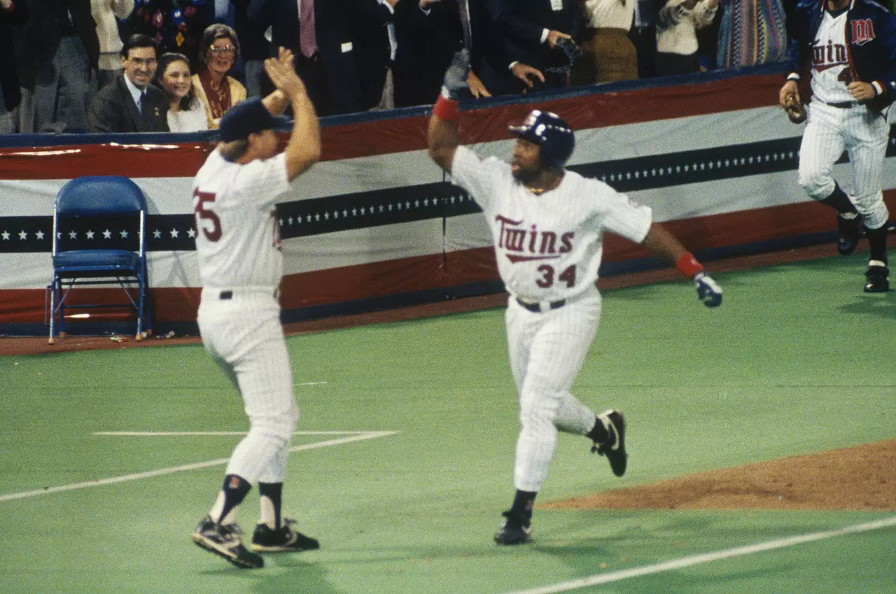 The highly entertaining '91 series between Minnesota and Atlanta was all about the walk-off. The Braves knotted the series at 2-2 with walk-off wins in Game 3 and 4, and led 3-2 when it was time for Game 6, back in Minnesota. This contest went to 11 innings, and when the stars needed to shine the brightest, the beloved Puckett stepped up to plate and sent a Charlie Leibrandt pitch into the left-center-field seats of the Metrodome to break a 3-3 tie. And, prompted the great Jack Buck to proclaim: "We'll see you tomorrow night." Of course, fittingly, the series ended in the 10th on Gene Larkin's RBI single for a 1-0 Twins' Game 7 victory and World Series title.