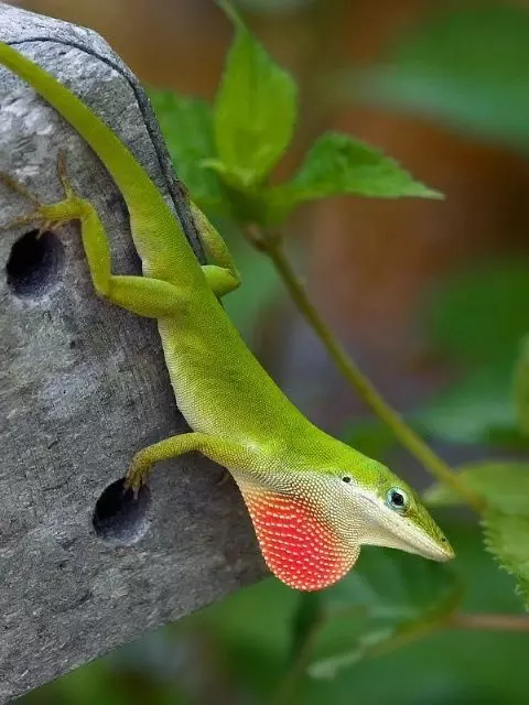 Native to the Southeast, the green anole is a tree-dwelling lizard that can change its body color to blend into its surroundings. Males display their brightly colored throat fan as a method of communication. You’ll find these small, harmless lizards in the Southeast U.S. and Texas.