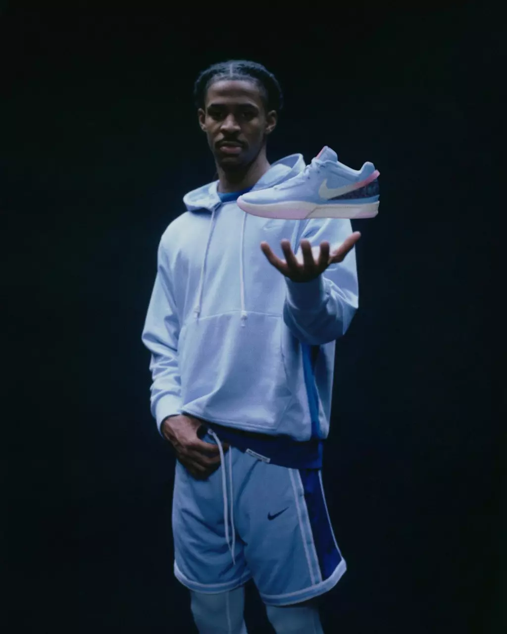 Nike worked with Morant to create the signature light-blue hue featured on the Day One colorway. It’s a symbol for the blue collar mentality that Morant says fuels everything he does.