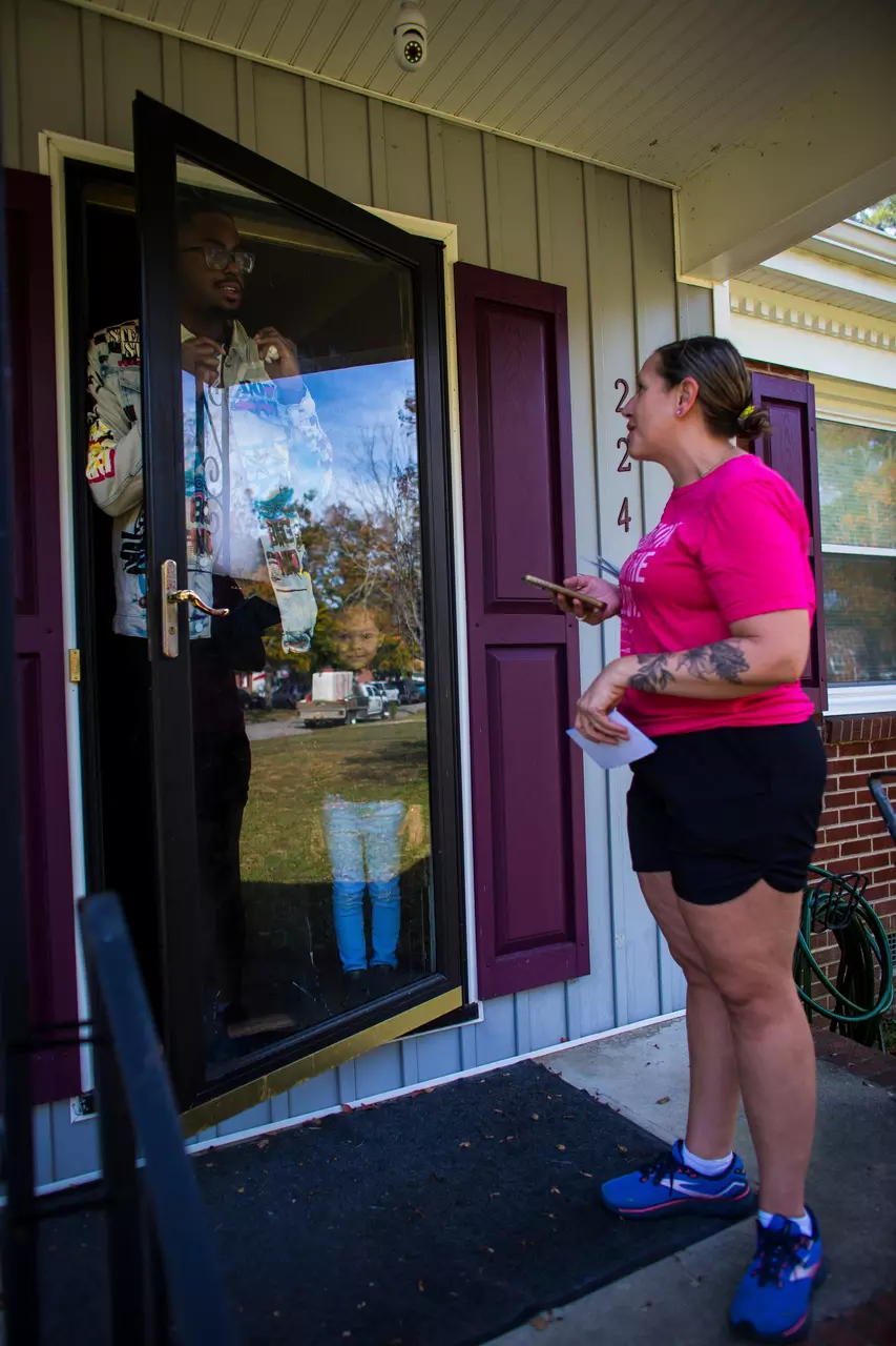 PETERSBURG, Va. (AP) — Rae Pickett stepped onto Richell Hines' front stoop wearing a pink T-shirt that foretold the case she hoped to make to Virginia voters as she knocked on doors on a sunny Saturday in early October.